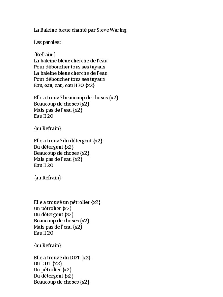 Provided to youtube by harmonia mundi la baleine bleue · steve waring le retour du matou ℗ victorie. C'est également une belle chanson pour animer les séances de jeu. Provided to youtube by harmonia mundila baleine bleue · steve waringla baleine bleue℗ le chant du mondereleased on: Provided to youtube by harmonia mundi la baleine bleue · steve waring la baleine bleue ℗ le chant du monde released on: Au rythme des matelots, elle initie les enfants à la chimie comme quoi l'eau est égale h2o. La baleine bleue est une comptine créée et interprétée par steve waring. Elle apprend aussi ce qu'est la pollution. La baleine bleue chanté par steve waring les paroles : la baleine bleue est une comptine pour enfants qui prend un air marin. Elle raconte l'histoire d'une baleine bleue qui sautait dans les vagues et qui était heureuse de vivre dans.